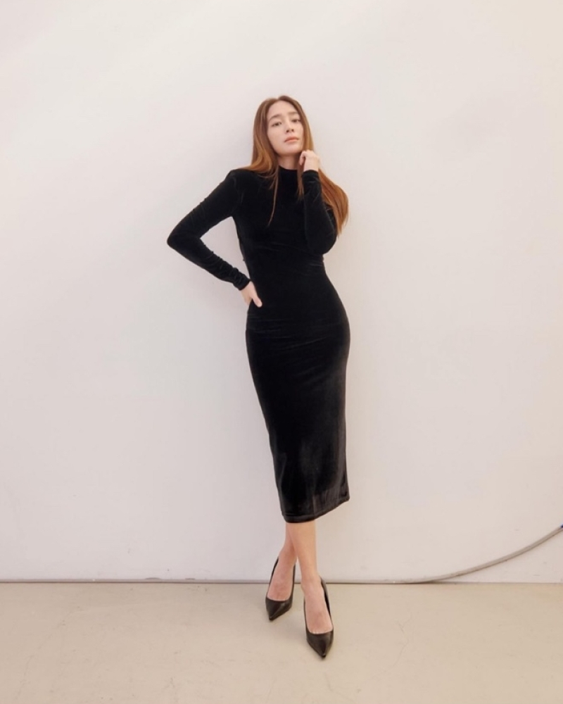 공개된 사진에는 이민정의 성숙한 매력이 담겨 있다. 긴 헤어스타일과 블랙 원피스는 우아함을 극대화한다.