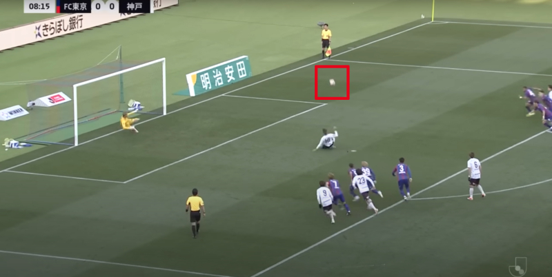 설상가상 소속팀 고베는 후반 5분 선제 실점까지 허용하며 궁지에 몰렸다. 그러나 오사코에게 한 번 더 기회가 찾아왔다. 후반 12분 동점골 이후 상대 퇴장으로 수적 우위까지 점한 후반 29분. 페널티 박스 왼쪽에서 결정적인 프리킥 기회를 얻은 것이다.