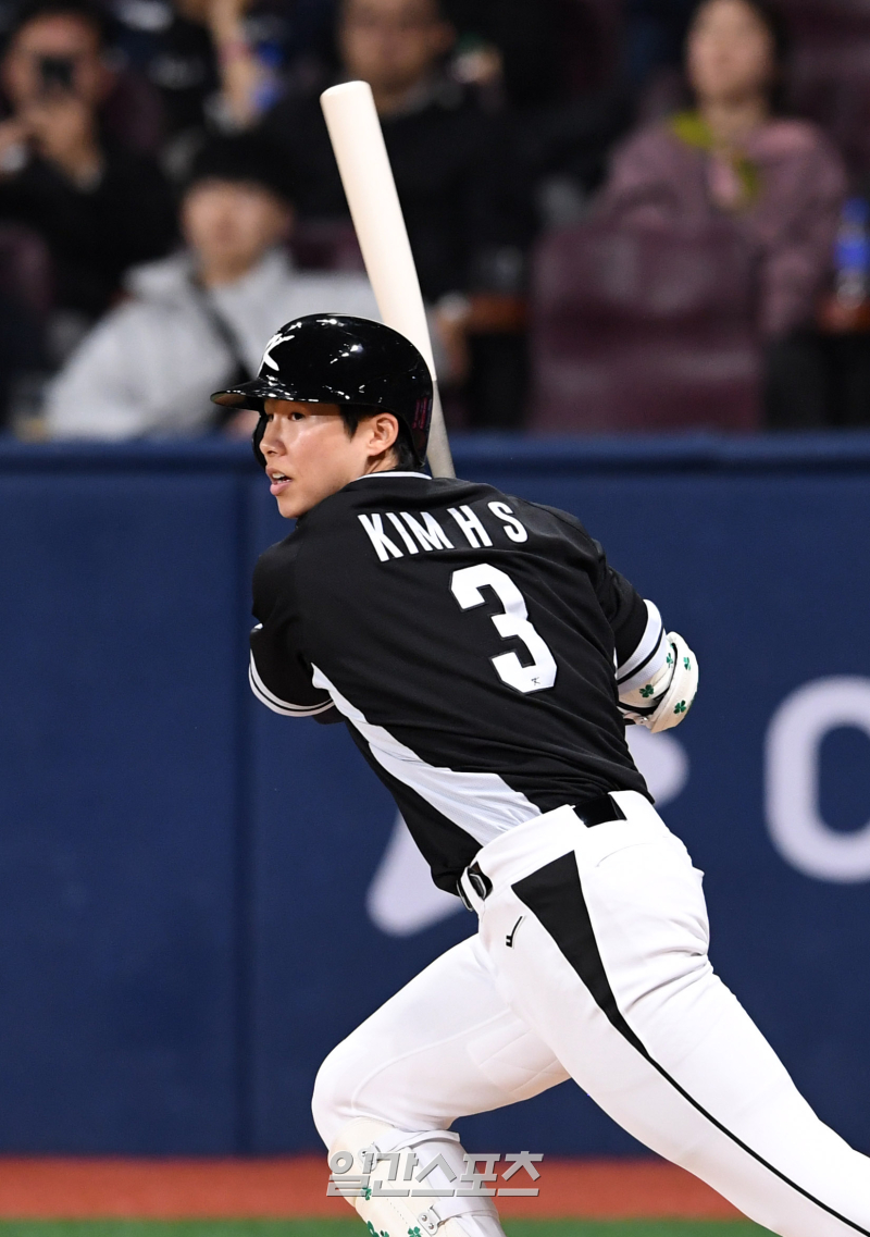 팀 코리아 김혜성. 고척돔=정시종 기자 capa@edaily.co.kr 이어 팀 코리아 캡틴 김혜성이 한 방을 날렸다. 그는 우익수 방면으로 날카롭게 날아가는 2루타를 당겨서 생산했고, 무사 2·3루 기회 때 윤동희의 땅볼로 한 점이 만들어졌다. 0-1 열세를 동점으로 돌린 순간이다. 이어 첫 안타를 친 강백호가 희생 플라이를 기록, 팀 코리아가 가볍게 역전까지 허용했다.