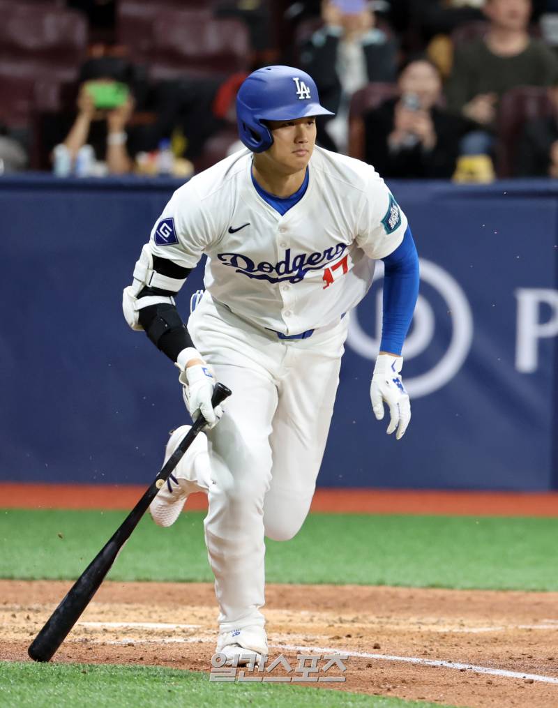 18일 서울 고척스카이돔에서 ‘메이저리그 월드투어 서울 시리즈 2024’ LA 다저스와 팀 코리아의 경기가 열렸다. 3회 다저스 오타니가 타석을 준비하고 있다. 고척=정시종 기자 capa@edaily.co.kr /2024.03.18/한국에서 열리는 미국프로야구 메이저리그(MLB) 정규시즌 개막전을 앞두고 18일 오후 서울 고척스카이돔에서 한국야구대표팀과 LA 다저스가 스페셜매치를 펼쳤다. LA 오타니 쇼헤이가 4회 힘차게 타격하고 질주하고있다. 2루 땅볼 아웃 고척돔=정시종 기자 capa@edaily.co.kr /2024.03.18.