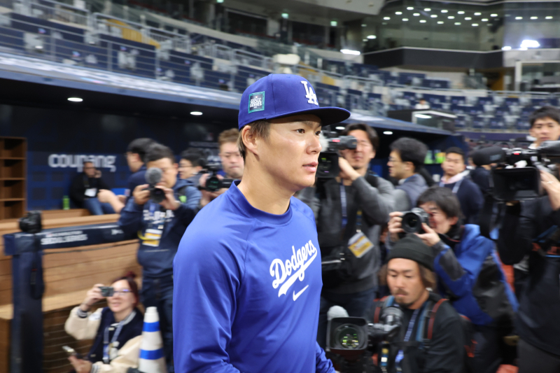 현지에선 야마모토의 투구 중 습관이 노출된 것 아닌가는 우려가 나왔다. 프라이어 투수 코치가 하루 앞당겨 불펜 투구를 한 점에 대해 "해결하고 싶은 과제가 있었기 때문"이라고 밝힌 만큼, 보완점을 발견하고 조정한 것으로도 볼 수 있다. (서울=연합뉴스) 최재구 기자 = 미국 메이저리그(MLB) 월드 투어 서울시리즈에 출전한 로스앤젤레스(LA) 다저스의 야마모토 요시노부가 19일 서울 구로구 고척스카이돔에서 훈련을 위해 그라운드로 나가고 있다. 야마모토는 20일 훈련 종료 후 "컨디션을 순조롭게 끌어올리고 있다. (서울 시리즈 개막이) 서서히 실감 난다"면서 "마지막까지 집중해서 열심히 하겠다"고 의지를 다졌다.
