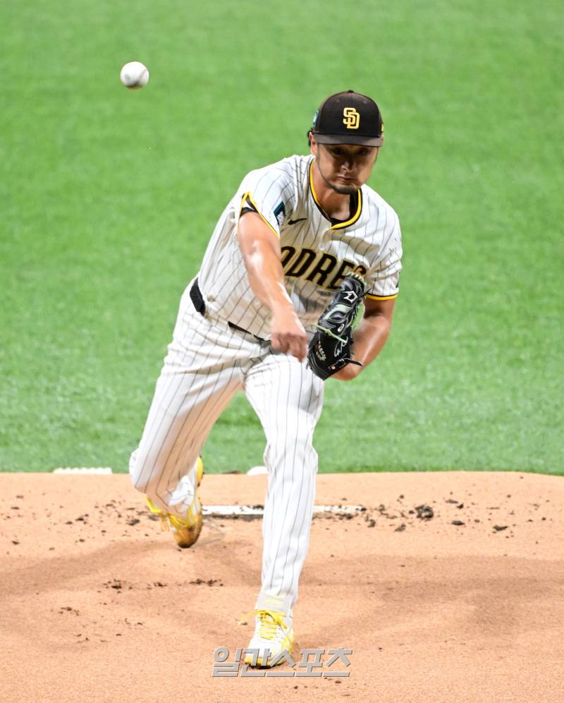 한국에서 사상 최초로 열리는 미국프로야구 메이저리그(MLB) 정규시즌 개막전인 LA다저스와 샌디에이고 파드리스경기가 20일 오후 서울 고척스카이돔에서 열렸다. 샌디에이고 선발 다르빗슈가 역투하고있다. 고척돔=정시종 기자 capa@edaily.co.kr /2024.03.20.한국에서 사상 최초로 열리는 미국프로야구 메이저리그(MLB) 정규시즌 개막전인 LA다저스와 샌디에이고 파드리스경기가 20일 오후 서울 고척스카이돔에서 열렸다. 샌디에이고 선발 다르빗슈가 역투하고있다. 고척돔=정시종 기자 capa@edaily.co.kr /2024.03.20.