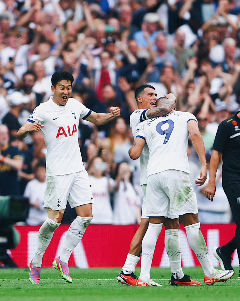 토트넘 주장 손흥민(왼쪽)이 지난해 셰필드 유나이티드전에서 히샬리송의 극적인 동점골이 터지자 벤치에 앉아 있다 그라운드로 뛰쳐나와 기뻐하고 있다. 사진=토트넘 SNS 여기에 리그 5위 토트넘(승점 53)의 손흥민과 히샤를리송도 함께 언급됐다. 손흥민은 14골 8도움, 히샤를리송은 10골 3도움으로 나란히 리그 10득점을 돌파했다.