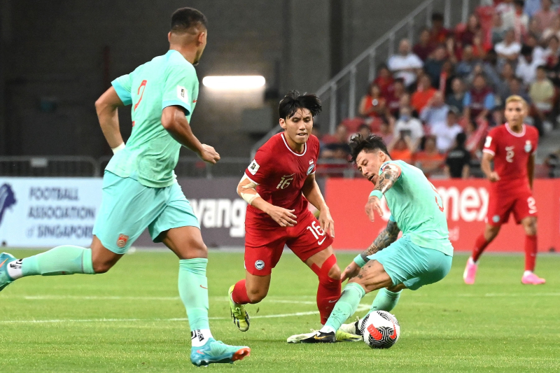 사진은 지난 21일 열린 싱가포르와 중국의 2026 FIFA 북중미 월드컵 아시아 2차 예선 C조 3차전. AFP=연합뉴스
