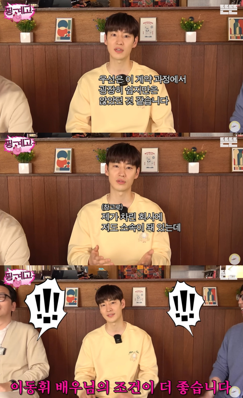 이제훈은 “컴퍼니온이라는 회사를 운영하고 있다. 올해 초에 이동휘와 함께하게 됐다”며 “계약 과정에서 굉장히 쉽지만은 않았다. 내가 차린 회사에 나도 소속돼 있는데 나의 조건보다 이동휘의 조건이 더 좋다”고 털어놨다.