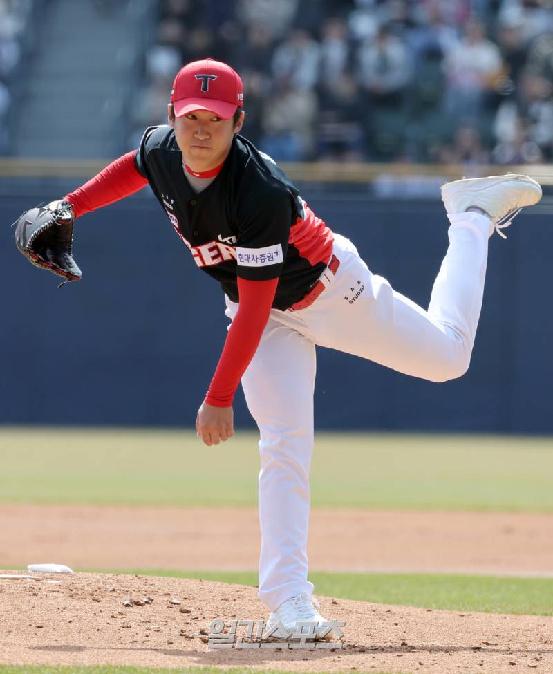 윤영철에게 2년 차 징크스란 없었다. 전날 8득점을 폭발시킨 두산 타선은 윤영철의 노련한 투구에 꽁꽁 묶였다. 1회를 삼자 범퇴로 묶은 윤영철은 2회엔 4번 타자 김재환, 전날 멀티 홈런을 친 강승호에게 안타를 내줬으나 다른 세 타자를 모두 헛스윙 삼진으로 솎아냈다. 그의 직구 최고 구속은 141㎞/h에 그쳤으나 체인지업, 커터, 슬라이더를 고루 던지며 두산 타자의 방망이를 피해갔다. 3회도 삼자 범퇴로 마친 윤영철은 4회도 무실점으로 막은 후 5회까지 삼자범퇴로 마쳤다.