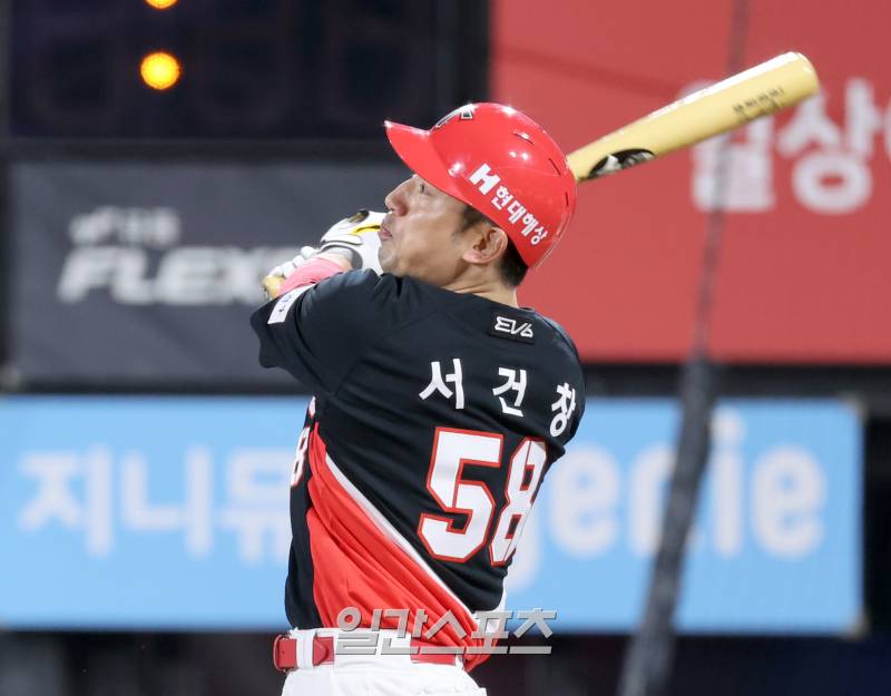 사이클링 히트(히트 포 더 사이클)에 3루타가 부족했다. 이날 서건창은 0-1로 뒤진 2회 초 1사 1·3루에서 좌전 적시타로 시동을 걸었다. 두 번째 타석에선 짜릿한 손맛을 봤다. 1-1로 맞선 4회 초 2사 1루에서 KT 선발 엄상백의 3구째 133㎞/h 체인지업을 걷어 올려 오른쪽 펜스를 넘겼다. 비거리 115m. 서건창의 홈런은 LG 트윈스 소속이던 2022년 9월 21일 광주 KIA전 이후 560일 만이었다.