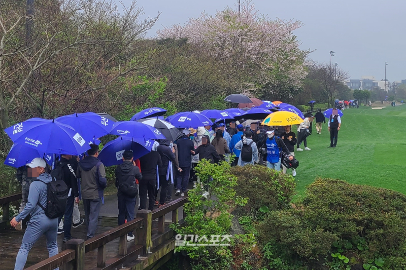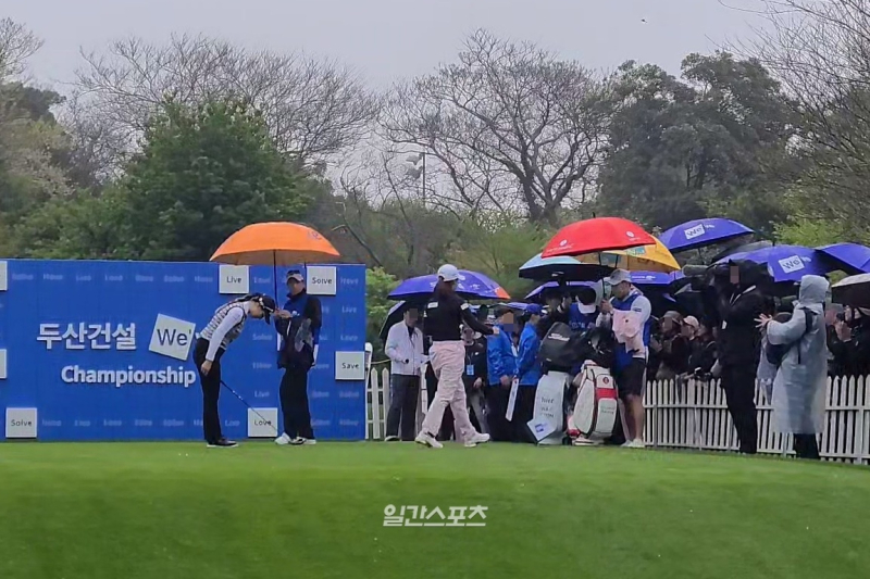 방신실, 황유민에 이어 필드에 들어선 윤이나는 티 샷을 하기 전 갤러리들을 향해 인사부터 건넸다. 사과의 의미였다. 이날 비가 오는 궂은 날씨에도 많은 갤러리가 윤이나의 플레이를 보기 위해 필드를 찾았고, 윤이나는 이들에게 고개부터 숙이며 복귀전을 시작했다.