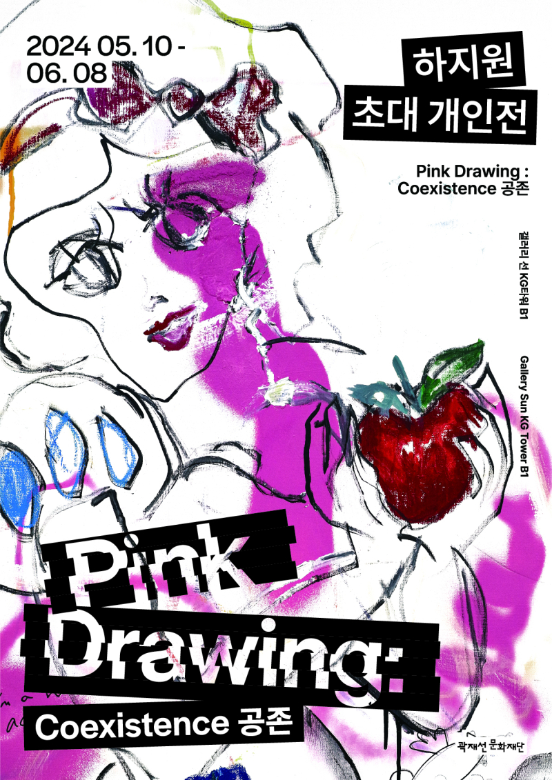 하지원 초대 개인전 ‘핑크 드로잉: 코이그지스턴스 공존’(Pink Drawing : Coexistence 공존)이 서울 중구 KG타워 갤러리선에서 오는 10일부터 6월 8일까지 열린다.