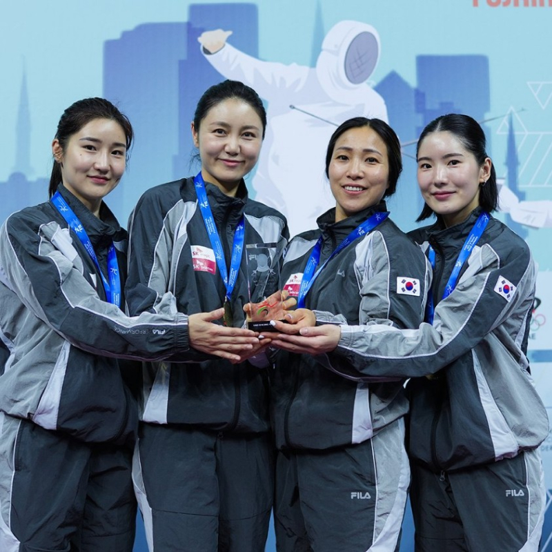 한국 펜싱 여자 에페 대표팀이 월드컵 단체전에서 우승했다. 사진=국제 펜싱 연맹 SNS 캡처 2024 파리올림픽을 앞둔 한국 펜싱 여자 에페 대표팀이 월드컵에서 단체전 정상에 올랐다.