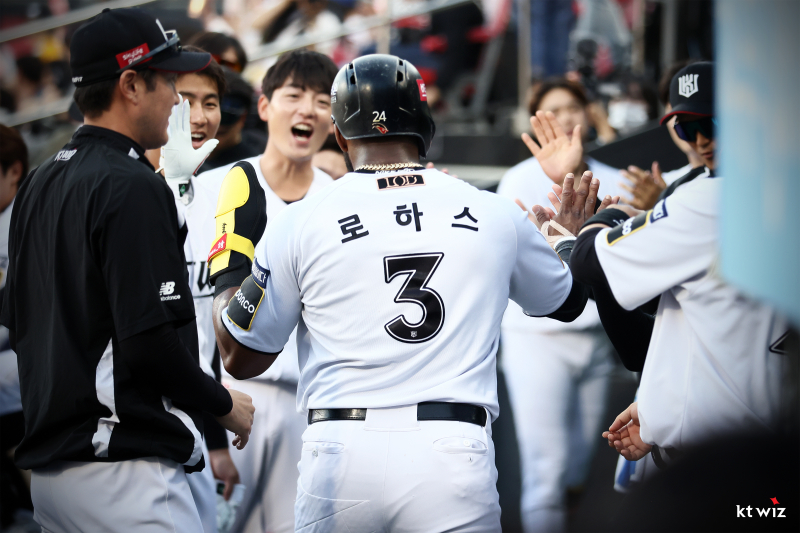 먼저 웃은 팀은 KT였다. 선두타자 로하스와 김민혁의 연속 안타로 무사 1,2루를 만든 KT는 2사 후 장성우의 적시타로 1점을 달아났다. 삼성도 2회 말 균형을 맞췄다. 선두타자 이재현의 안타와 오재일의 2루타로 만들어진 무사 2,3루에서 강민호의 우익수 희생플라이로 1-1 동점을 이뤘다.