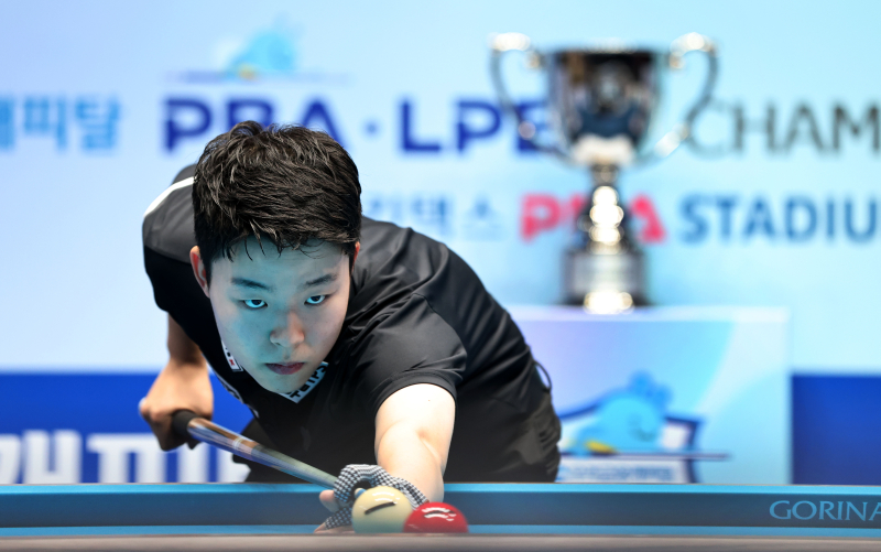 2024~25 프로당구 개막전 우리금융캐피탈 PBA 챔피언십 준우승을 차지한 2007년생 김영원. 사진=프로당구협회 출발은 김영원이 좋았다. 1세트 하이런 7점을 앞세워 강동궁에 15-4로 승리, 기선을 제압했다. 이에 질세라 강동궁도 2세트 4-4로 맞선 상황에서 하이런 11점으로 승부를 원점으로 돌렸다. 3세트에선 다시 김영원이 15-13으로 승리하며 정상에 한 걸음 더 다가서는 듯했다.