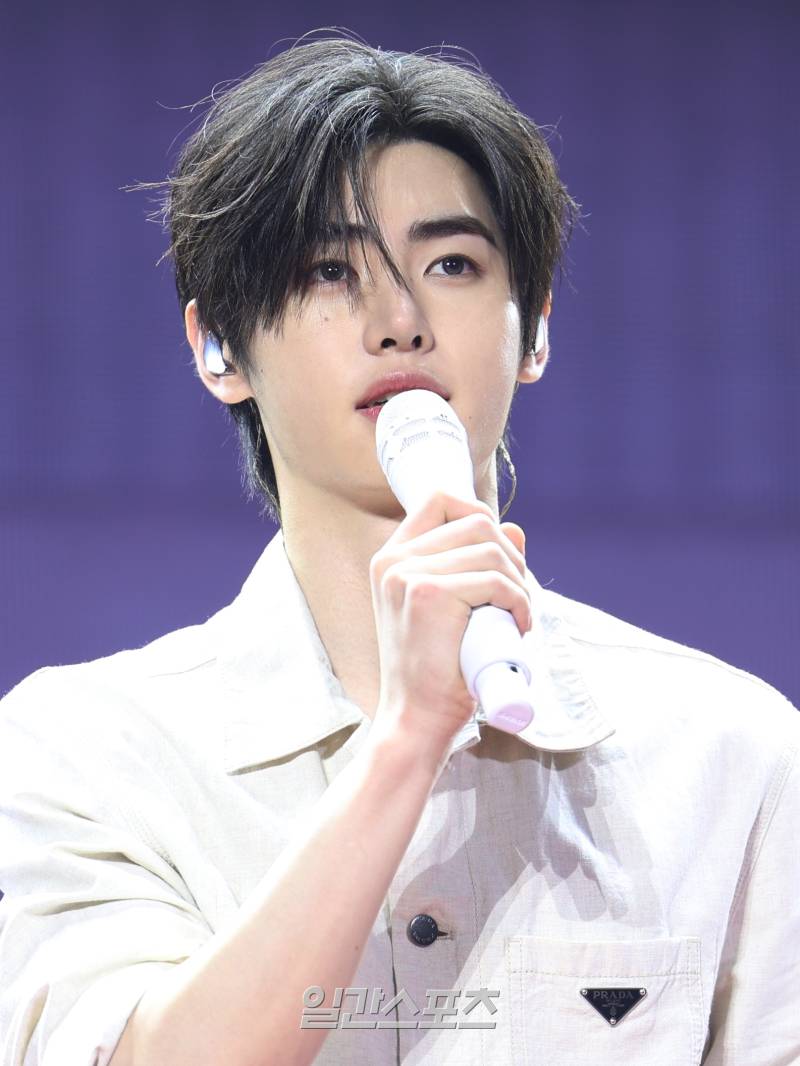 그룹 엔하이픈 정훈이 11일 오후 서울 송파구 올림픽공원 올림픽핸드볼경기장에서 진행된 정규 2집 '로맨스 : 언톨드(ROMANCE : UNTOLD)' 발매 기념 쇼케이스에 참석해 인사말을 하고 있다.