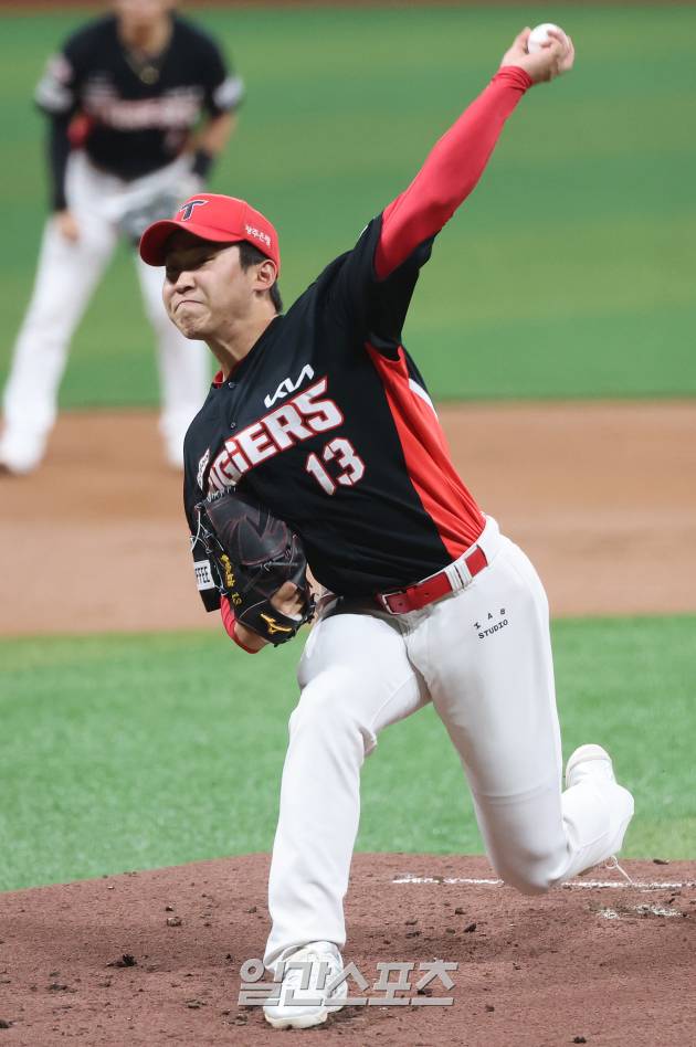2024 KBO리그 프로야구 키움 히어로즈와 KIA 타이거즈의 경기가 24일 오후 서울 고척스카이돔에서 열렸다. KIA 선발 윤영철이 투구하고 있다. 고척=김민규 기자 /2024.04.24/
