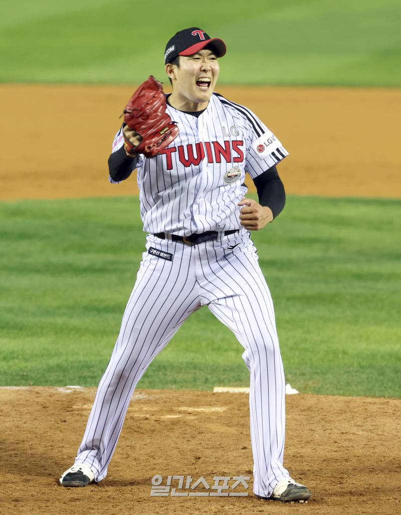 손주영은 지난 5~11일 KT 위즈와의 준플레이오프(준PO) 두 경기에 등판해 7과 3분의 1이닝 동안 무실점을 기록했다. 피안타 2개, 볼넷은 고작 1개였다. 아웃카운트의 절반이 넘는 11개를 삼진으로 잡아냈다.