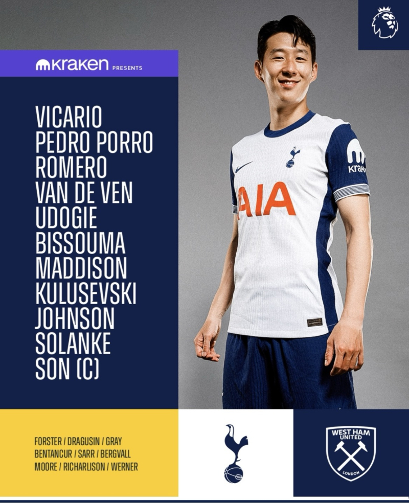 손흥민이 웨스트햄전 선발 라인업에 포함됐다. 사진=토트넘 SNS ‘캡틴’ 손흥민(토트넘)이 돌아왔다.