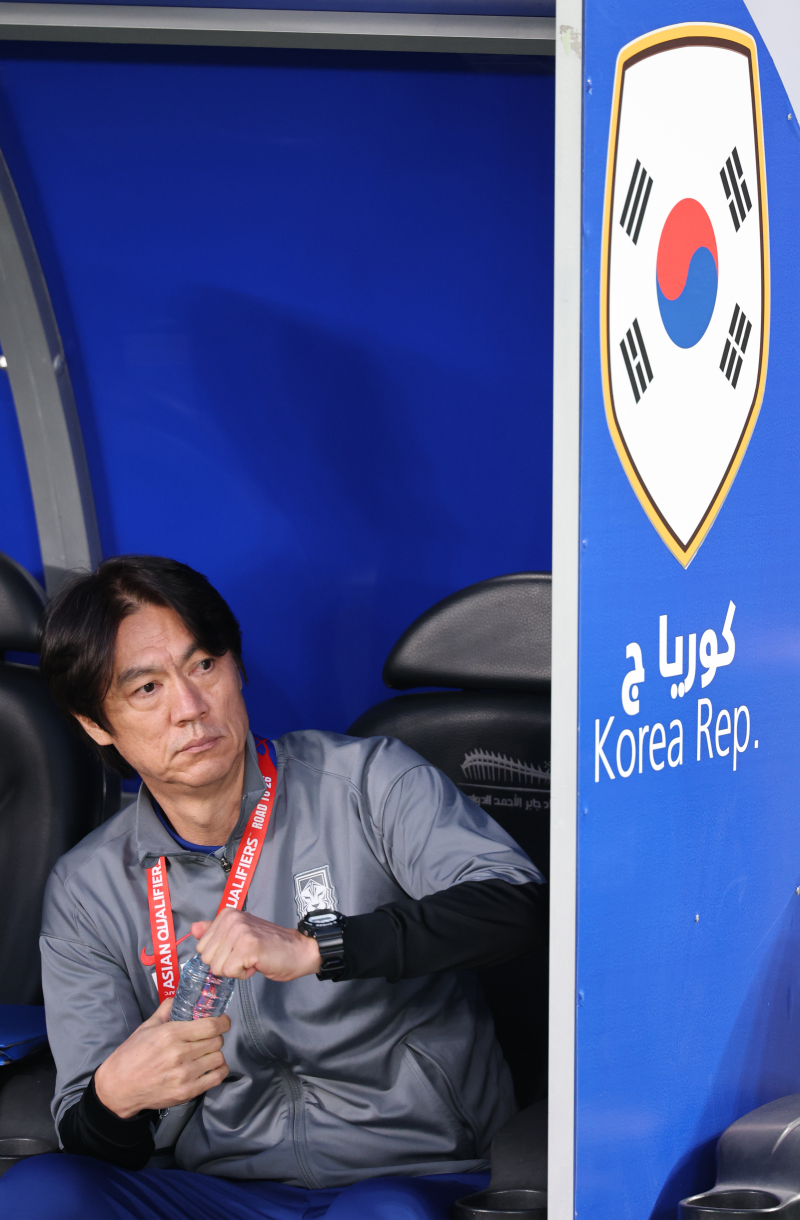 경기 시작 기다리는 홍명보 감독 (쿠웨이트시티=연합뉴스) 황광모 기자 = 14일 오후(현지시간) 쿠웨이트 자베르 알 아흐메드 국제 경기장에서 열린 2026 북중미 월드컵 아시아지역 3차 예선 B조 5차전 한국과 쿠웨이트의 경기. 대한민국 홍명보 감독이 경기 시작을 기다리고 있다. 2024.11.14 hkmpooh@yna.co.kr/2024-11-14 22:58:30/ <저작권자 ⓒ 1980-2024 ㈜연합뉴스. 무단 전재 재배포 금지, AI 학습 및 활용 금지> 한국은 배준호의 쐐기 득점으로 일단 흐름을 끊었는데, 경기 막바지 아쉬운 장면이 나왔다. 후반 40분 쿠웨이트가 한국의 왼쪽 진영에서 간접 프리킥 기회를 잡았다. 이때 공이 박스 안으로 향했는데, 레다 하니를 마크하는 선수가 아무도 없었다. 하니는 회심의 헤더를 시도했으나, 공은 골대 왼쪽을 강타한 뒤 나왔다. 한국 입장에선 행운이었다.