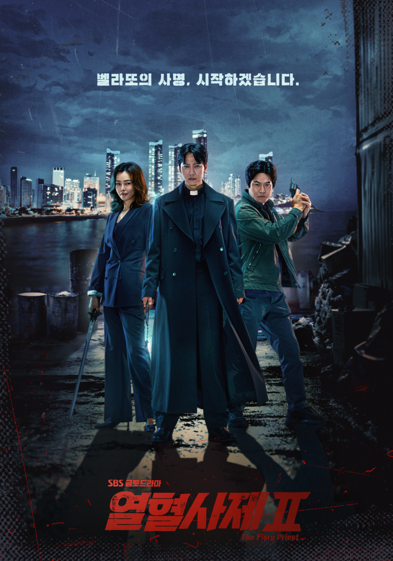 SBS 금토드라마로 ‘열혈사제2’가 돌아왔다. 코로나19가 한창이던 2019년에 방영돼 최고시청률 22%(닐슨코리아 전국 기준)를 기록했던 작품이다. 가상의 도시인 구담시를 배경으로 분노조절장애를 가진 사제 김해일(김남길)과 똘기 가득한 형사 구대영(김성균) 그리고 역시 보통은 아닌 검사 박경선(이하늬)이 공조하는 수사극으로 큰 인기를 끌었다. 5년 만에 돌아온 ‘열헐사제2’는 이제 그 배경을 부산으로 옮겨 놨고, 국내 최고의 마약 카르텔과 한판 싸움을 벌인다. 이 마약 카르텔의 절대 보스로 김홍식(성준)이 최강빌런으로 등장했고, 이에 맞서기 위해 김해일이 부산으로 가면서 그곳으로 구대영과 박경선은 물론이고 오요한(고규필)과 쏭삭(안창환), 수녀 김인경(백지원) 등이 속속 합류할 것으로 보인다. 구담시를 배경으로 펼쳐졌던 시즌1이 이른바 ‘구벤져스’를 탄생시켰다면, 이제 부산을 배경으로 옮긴 시즌2는 ‘부벤져스’의 탄생을 예고하고 있다.