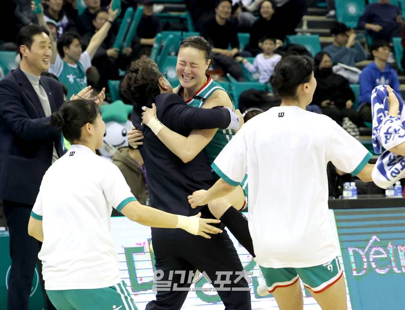 [포토]역전 버저비터 김정은, 짜릿한 역전에 뜨거운 포옹