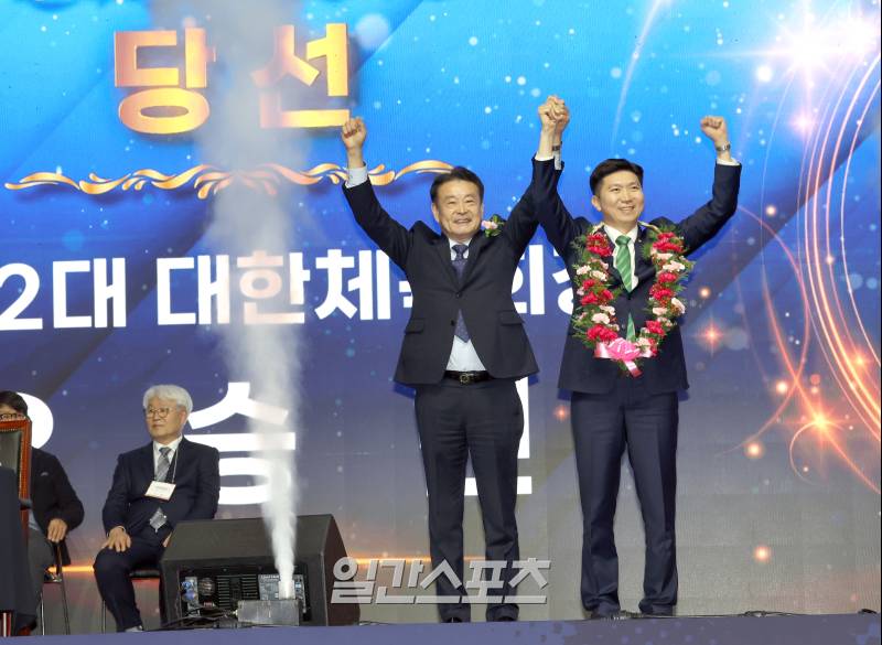 [포토] 당선 환호하는 유승민 제42대 대한체육회장