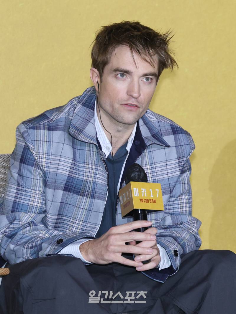 할리우드 배우 로버트 패틴슨이 20일 오전 서울 용산구 CGV용산아이파크몰에서 열린 영화 ‘미키 17’ 푸티지 시사 및 기자간담회에 참석해 취재진과의 질의 응답 시간을 갖고 있다.
