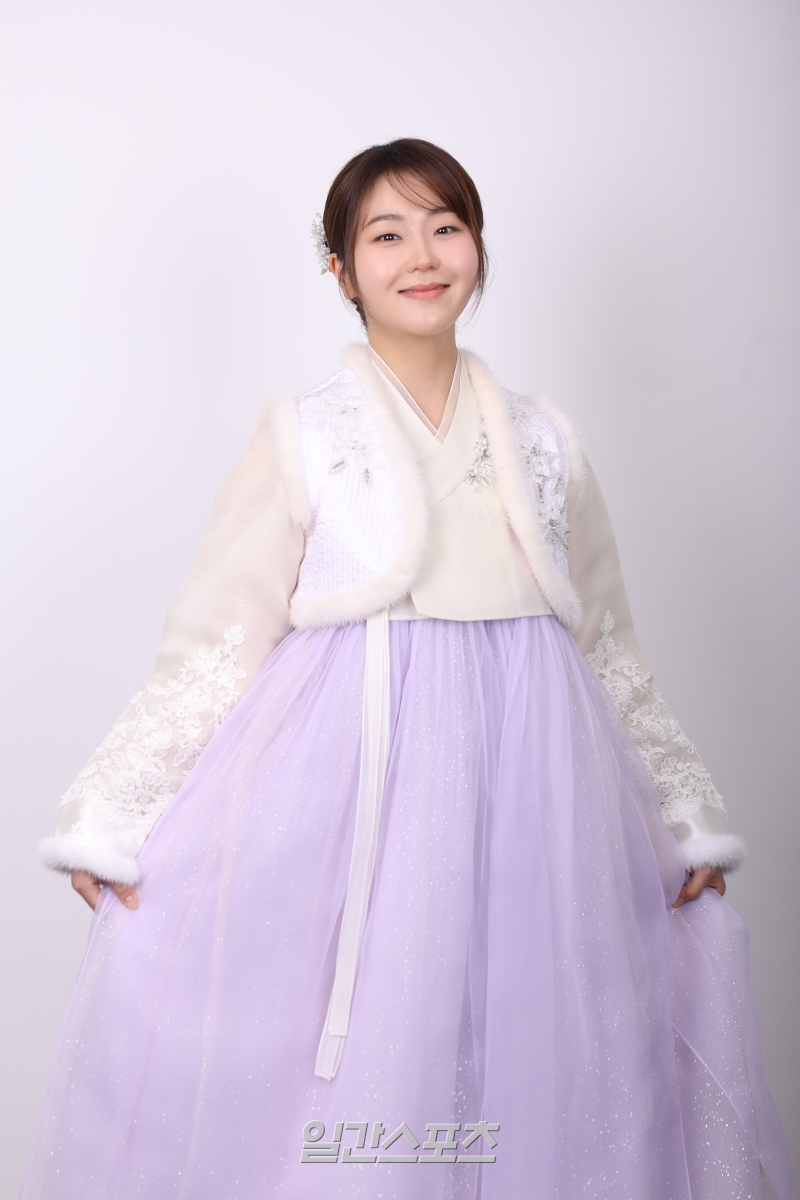 2025년 설을 맞아 한복을 차려입은 배우 서혜원이 서울 중구 순화동 KG타워에서 일간스포츠와 인터뷰 사진 촬영을 하고 있다.