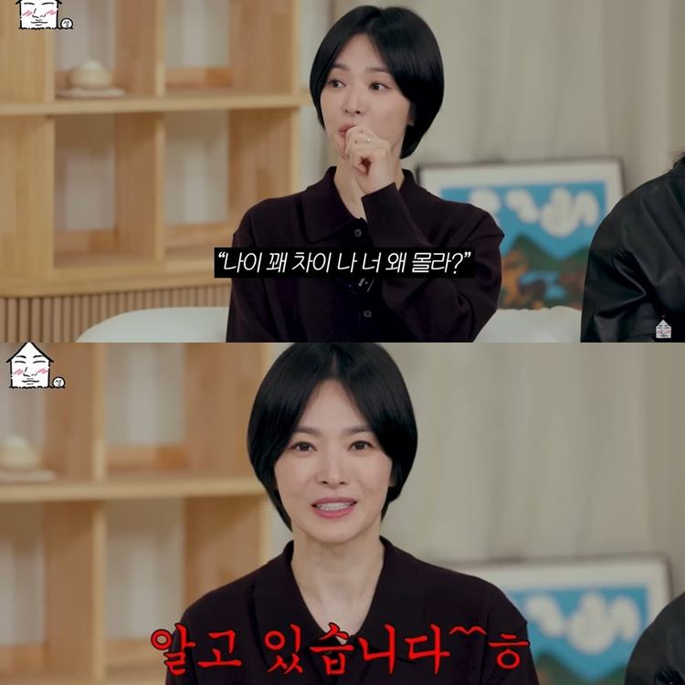 카메라를 응시한 후 송혜교는 “알고 있다. (전여빈과) 나이 차이 크게 난다”고 응수해 웃음을 자아냈다.