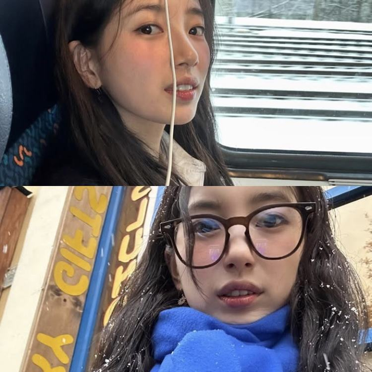 사진 속 수지는 기차 여행을 즐기고 있는 모습이다. 가슴까지 오는 긴 웨이브 머리로 청순한 비주얼을 배가시켰다. 특히 목도리와 장갑을 파랑색으로 색깔을 맞추는 등 귀여운 패션센스도 자랑했다.