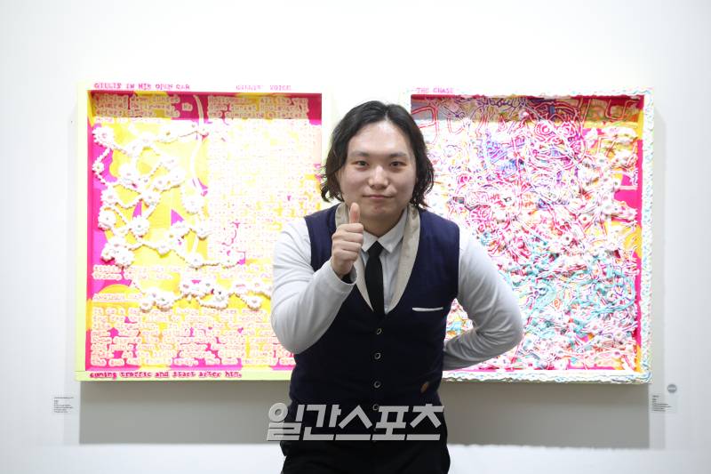 [포토] 작품 앞에서 기념 촬영하는 장영준 작가