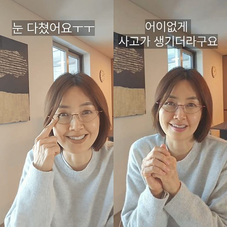 신애라는 지난 9일 자신의 소셜 미디어 계정을 통해 “눈을 다쳤다. 새벽에 화장실을 가다가 그 익숙한 짧은 길에서 꽝 부딪혔다. 얼마나 아픈지”라고 했다.