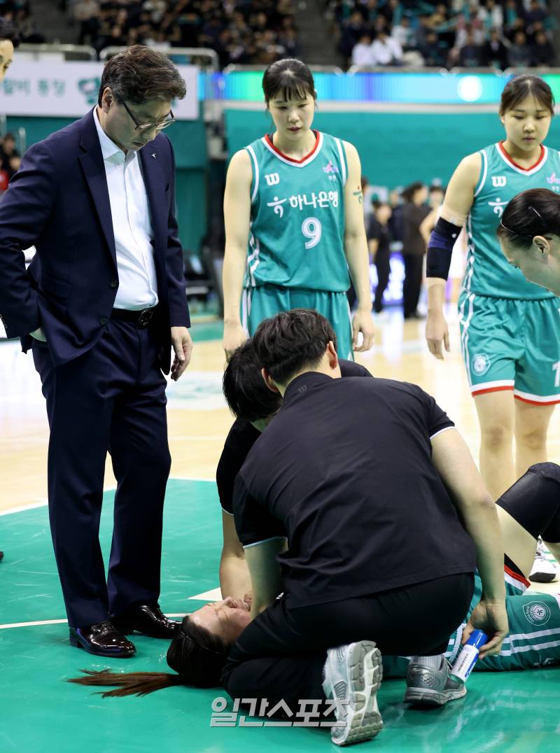 [포토]부상으로 쓰러진 양인영 지켜보는 김도완 감독