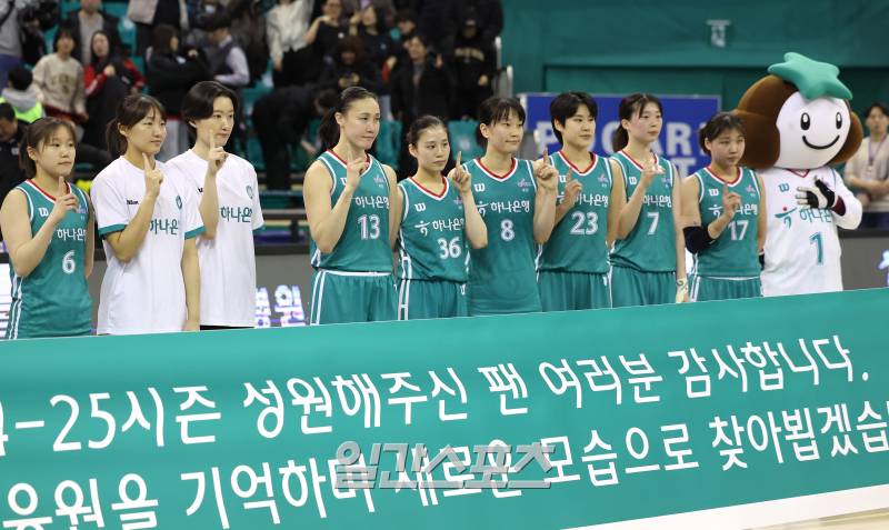 [포토]최하위 하나은행, 아쉬움 가득한 마지막 홈경기 기념촬영