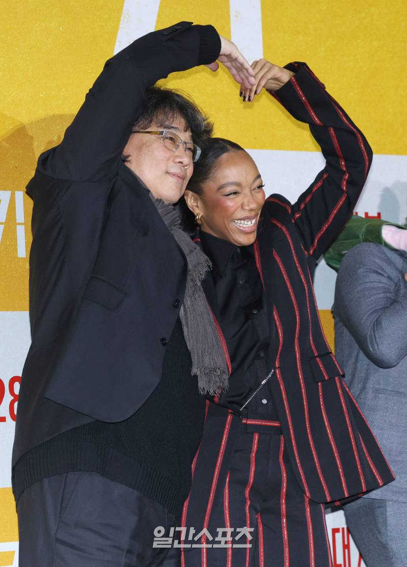 [포토] 봉준호-나오미 애키, 커플 하트 포즈