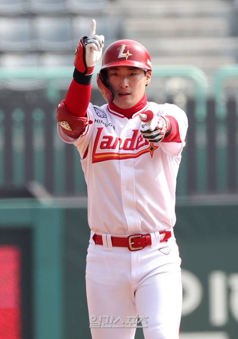 [포토]최지훈, 2루타 '빵야'