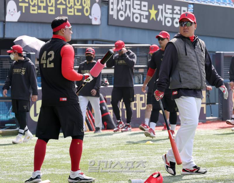 [포토] 김태군과 얘기하는 이범호 감독