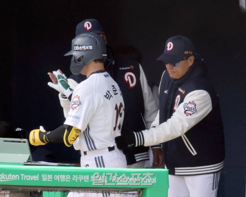 [포토] 솔로포 박준영 반기는 이승엽 감독