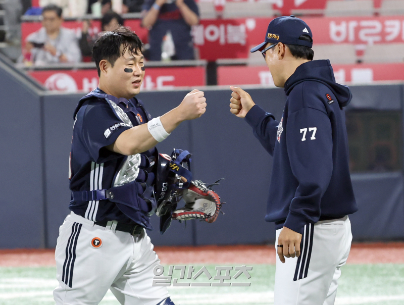 [포토] 이승엽 감독, 양의지와 하이파이브
