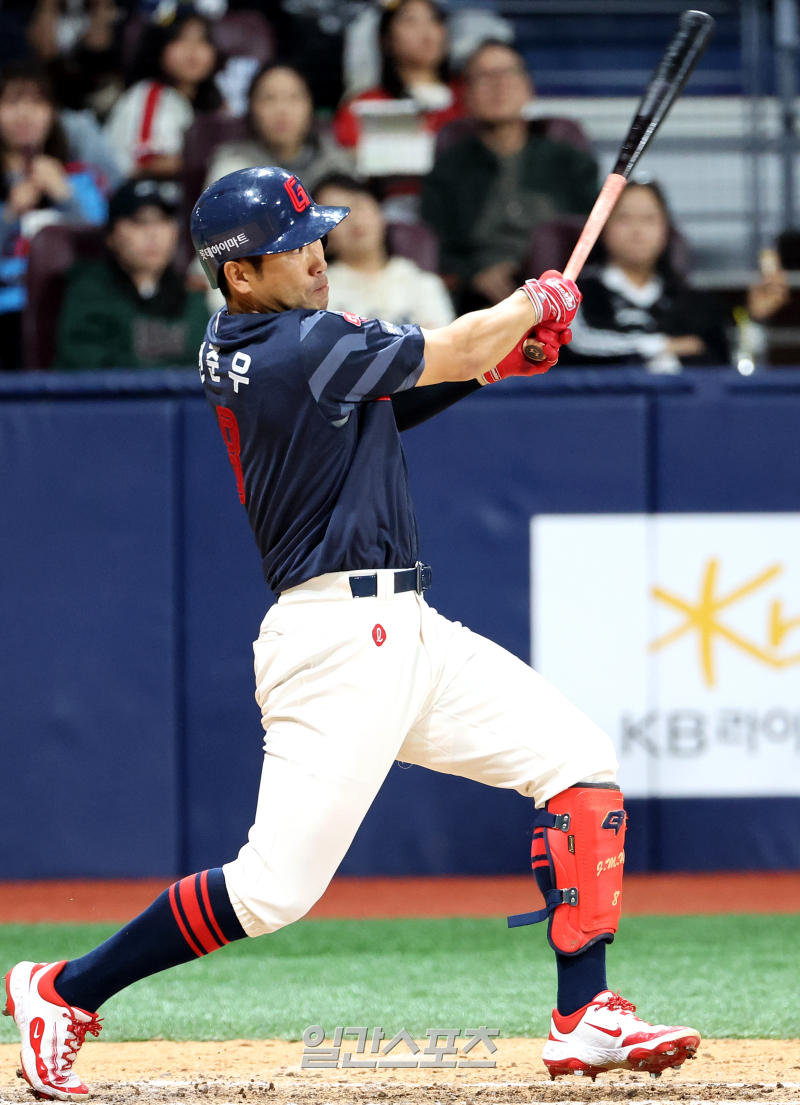 [포토]전준우 쐐기 적시타, 스윕승이 보인다!