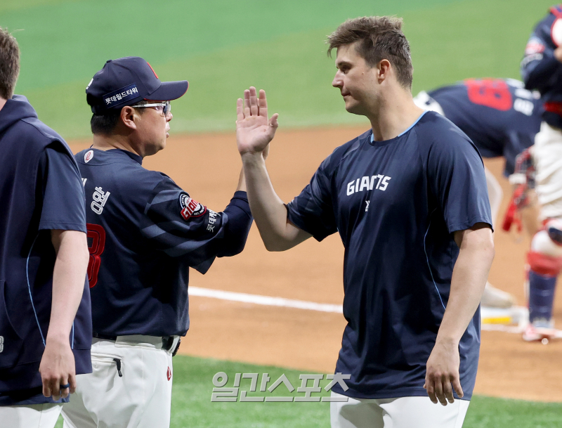 [포토]롯데 김태형 감독, 데이비슨 오늘 최고였어!