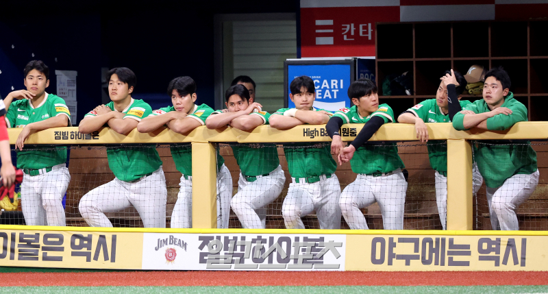[포토]'밀어내기 실점이라니'. 무거운 분위기의 키움 더그아웃