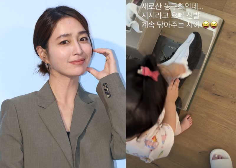 영상에는 이민정-이병헌 부부의 딸 서이가 오빠의 신발을 휴지로 정성스럽게 닦는 모습이 담겼다.
