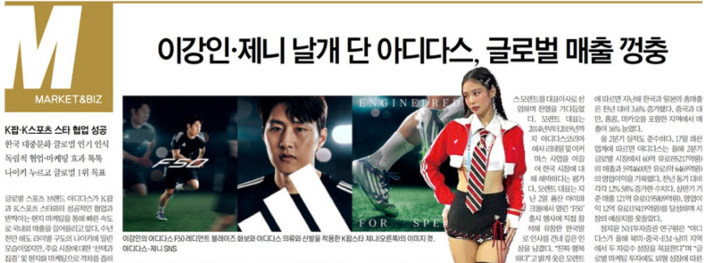 업계 관계자는 “아디다스가 칸예 웨스트와 갈등으로 2조원에 달하는 재고를 떠안았고 이미지에도 치명상을 입었다”며 “아디다스가 한국 시장과 대중문화의 파급력을 이해하고 감도 높은 마케팅을 전개하면서 반전을 일구고 있다”고 전했다.