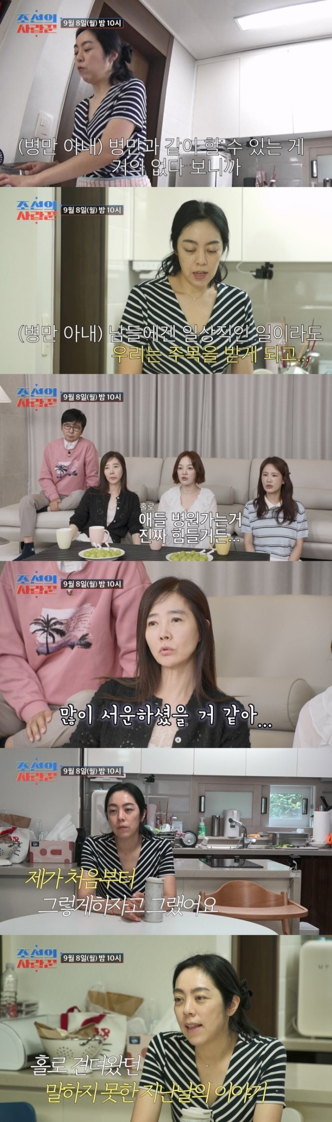 제작진은 “이렇게 홀로 살림하고 육아하면 힘들지 않으세요?”라고 김병만 아내에게 물었다. 그러자 김병만의 아내는 “힘들죠. 남편과 같이 할 수 있는 게 거의 없다 보니, 다른 사람들에 비해 혼자 감당해야 하는 부분들이 있었다”며 솔직한 심경을 전했다. 이어 “남들에게 일상적인 일이라도 우리는 주목을 받는다. 아이가 아파도 같이 병원에 갈 수 없었다”고 덧붙였다.