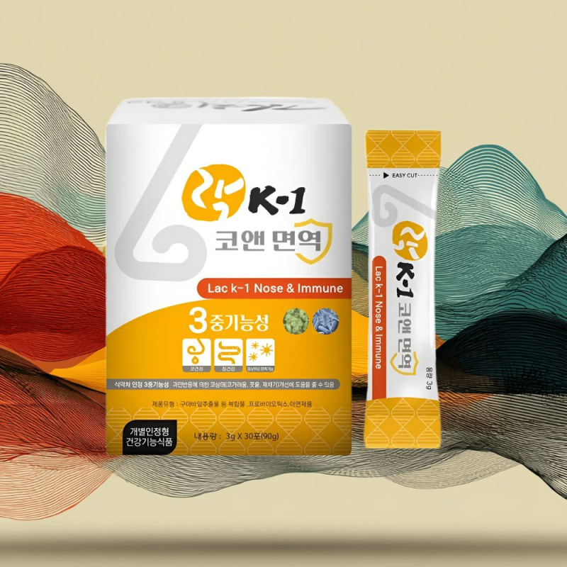 헬스케어 전문기업 (주)바이오리듬이 ‘락k-1 코앤면역’을 새롭게 출시했다. 비염·호흡기 건강에 특화된 유산균 시장 공략에 나선다고 밝혔다. 이 제품은 식약처 개별인정형 기능성 원료인 ‘구아바추출물 및 복합물’과 락토바실러스 플랜타럼 K-1 유산균을 주원료로 사용했다. 코 점막 면역과 장내 면역을 동시에 케어할 수 있도록 설계된 것이 특징이다.