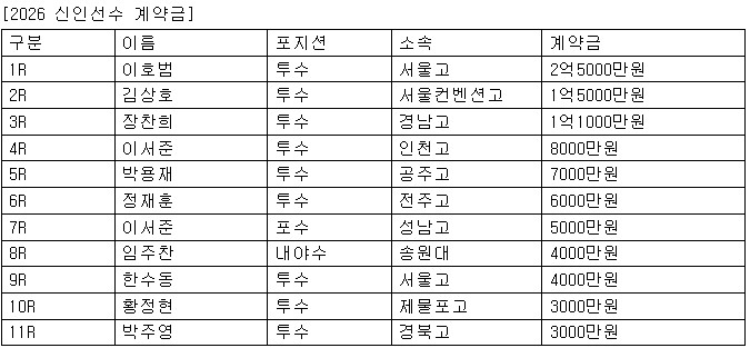'신인 투수 9명' 뽑은 삼성, 신인 11명과 계약 완료…1R 이호범 2억5000만원 [공식발표]
