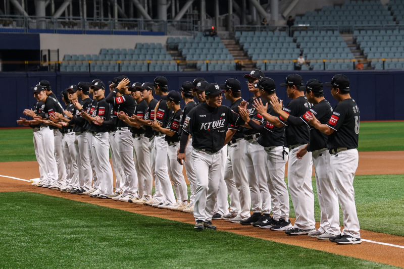 김호 감독이 이끈 KT 퓨처스 팀은 1일 서울 고척스카이돔에서 열린 2025 메디힐 퓨처스리그 챔피언결정전에서 상무에 10-5로 승리, 우승을 확정했다.