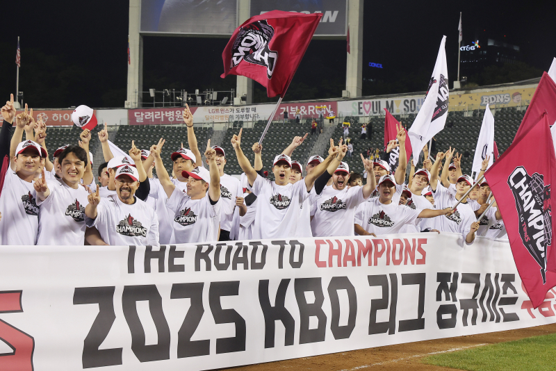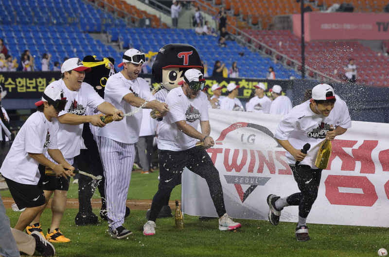 LG는 27일 한화전 승리로 정규시즌 우승 매직넘버를 '1'까지 줄였으나 29일 한화전, 30일 두산 베어스전, 10월 1일 NC 다이노스전까지 3연패를 당해 '1위 결정전' 압박까지 받았다. 그러나 한화의 충격적인 패배로 마지막에 웃었다. 샴페인 맞는 LG 주장 박해민 (서울=연합뉴스) 류영석 기자 = LG 트윈스 주장 박해민이 1일 서울 잠실야구장에서 정규 시즌 우승을 확정한 뒤 선수들로부터 샴페인 세례를 받고 있다. 2025.10.1 ondol@yna.co.kr/2025-10-01 23:25:02/ <저작권자 ⓒ 1980-2025 ㈜연합뉴스. 무단 전재 재배포 금지, AI 학습 및 활용 금지> 염경엽 감독은 "자력으로 우승을 확정지었다면 좋았을텐데 가장 아쉽다"라면서 "1년 동안 힘들고 어려운 시기도 많았는데 선수들이 책임감을 갖고 버텨 목표로 했던 정규시즌 우승을 달성했다"라며 "1차 목표를 이뤘으니 남은 기간 준비를 잘해서 2023년 우승의 영광을 재현하도록 열심히 준비하겠다"라고 밝혔다.