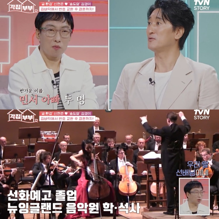 2일 방송된 tvN 스토리 ‘각집부부’에는 배우 신현준과 첼리스트 아내 김경미 부부가 출연했다. 신현준은 서울에, 김경미는 송도에 거주하며 각집살이를 이어가고 있었다.