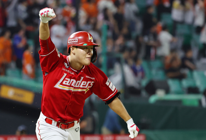 지난 1일 한화전에서 9회 말 끝내기 홈런을 날린 뒤 환호하는 SSG 이율예. 연합뉴스 KIA는 2일 광주 KIA챔피언스필드에서 열린홈경기에서 선발 이도현의 호투와 홈런 두 방을 앞세워 SSG를 7-2로 물리치고 최근 4연패에서 벗어났다.
