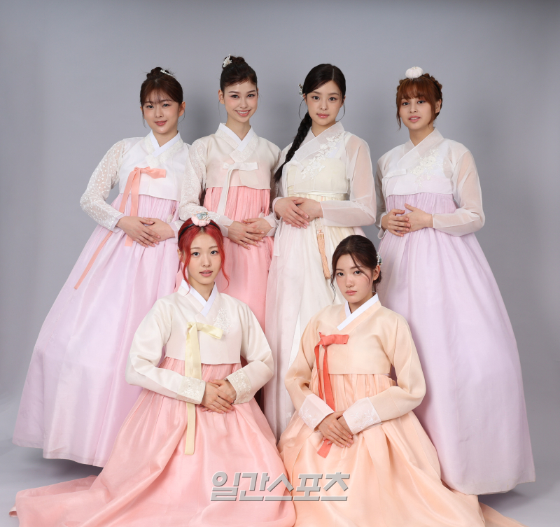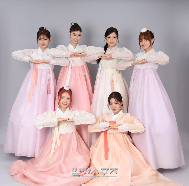 그룹 앳하트가 서울 중구 순화동 KG타워에서 진행된 추석 맞이 한복 인터뷰에 앞서 포즈를 취하고 있다.앳하트는 한국 국적의 아린, 봄, 서현, 나현과 일본인 아우로라, 일본·미국 이중 국적의 미치, 필리핀 출신 케이틀린으로 구성된 7인조 다국적 그룹이다. 현재 아우로라는 현재 건강상의 이유로 활동을 잠시 중단한 상태다.